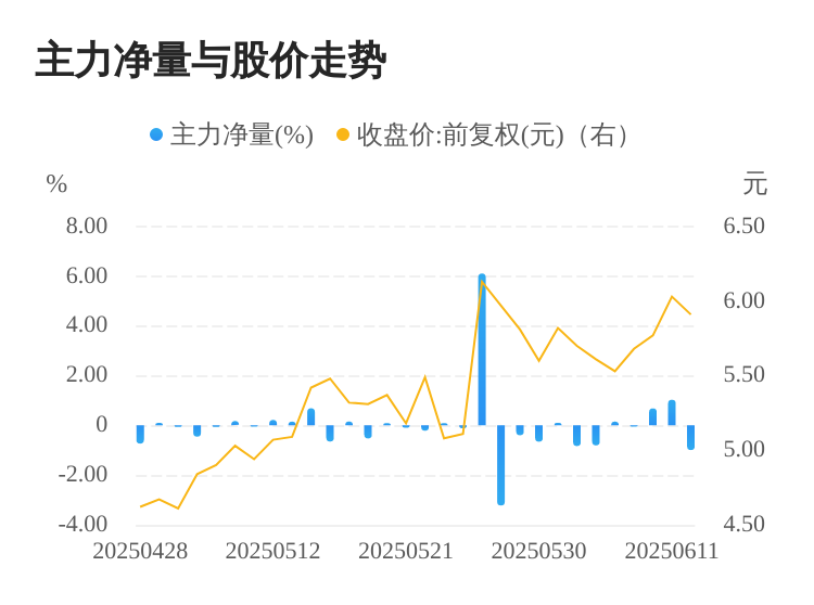 该股今日主力净量为负,且值较大,表明主力大幅流出,主动卖出明显多于主动买入。与此同时,今日换手率较高,主力抛售的嫌疑较大。投顾建议:投资者短期宜合理控制仓位,谨慎为佳。